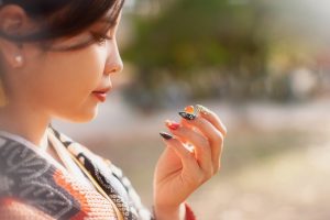 光の中に浮かび上がったのは、丁寧に仕上げられたネイル。